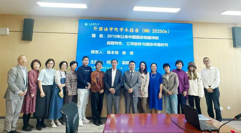 10月28日下午在文科大楼B910会议室,上海理工大学外语学院杨本明教授应邀莅临上海海洋大学外国语学院,作了题为《2010年以来中国国家级翻译的选题特色、立项趋势与国际传播研究》的学术讲座。讲座由外国语学院副院长何妤如主持,英语系、日语系、朝鲜语系等系部的众多教师及本科生、研究生参与。