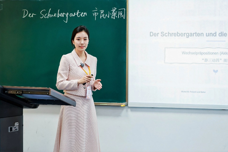 在长达数月的备赛过程中,高瑀晗老师扎根教学一线,对《大学基础德语》课程进行了细致梳理与优化。她用心探索如何在语言教学中融入文化思考,注重培养学生的思辨能力,从教学设计的反复打磨,到每一个讲课细节的精心构思,每一个环节都付出了大量心血。