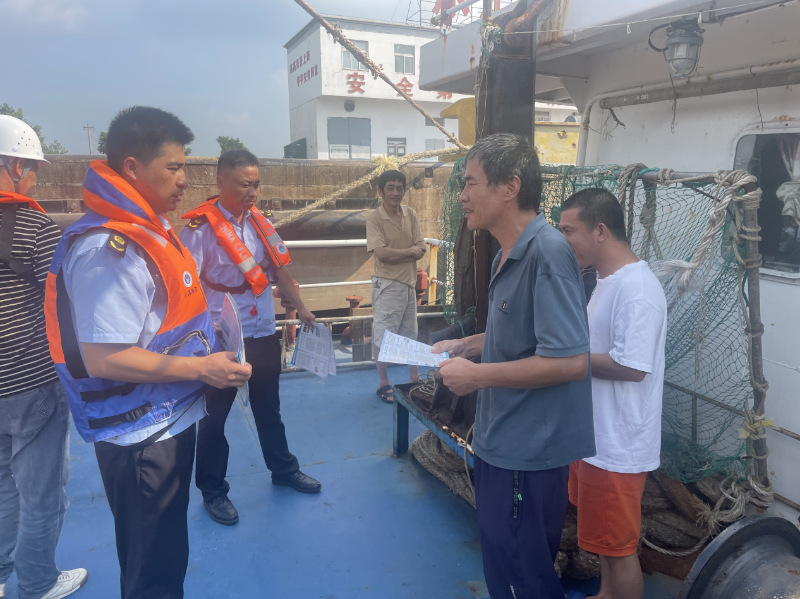 强化执法检查,拧紧监管“安全阀”。经开中队联合经开区禁捕办,将执法重心放在锚地船舶监管上。渔政执法人员驾驶执法船艇深入黄泥滩锚地水域,对停泊船舶逐一“过筛”。渔政执法人员登船后,对船舱、甲板等区域进行细致检查,不放过任何可能藏匿禁用渔具的角落。检查中,同步向船长和船员发放禁渔宣传手册,讲解法规政策,强调非法捕捞、携带禁用渔具的严重后果。此次执法与宣教并重的行动效果显著,一名货船船员在执法人员政策宣传下,主动上交了携带的禁用渔具。