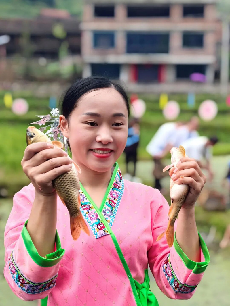 融水苗族自治县自然风光秀美,民族风情浓郁,是国家全域旅游示范区、全国休闲农业重点县、广西特色旅游名县、广西林下经济示范县。活动当天,融水苗族自治县安太乡培秀村同步开展“稻田抓鱼”“金秋烧鱼”等群众体验活动,游客与村民一同下田捕鱼、围炉烤鱼,现场其乐融融。数据显示,融水苗族自治县稻渔共养面积超过2万亩,年带动农户增收超5000万元。