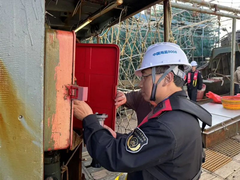 聚焦隐患排查,筑牢安全防线。行动期间,派出中国海监8008在东山、古雷近岸海域巡查,重点对大澳、澳角等重点渔港和核定乘员10人以上的渔船进行细致检查。重点排查渔港渔船消防救生设备配备与使用情况,检查渔船北斗、AIS及VHF等通导设备和号灯号型运行情况、电气线路安全、船员配备与持证情况等,针对发现安全问题隐患,现场责令立即整改,确保隐患消除到位。期间,共检查渔港2个、渔船13艘,发现并整改安全隐患6项。